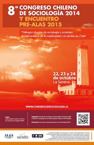 Durante el mes de octubre se realizó en La Serena, el 8° Congreso Chileno de Sociología 2014 y Encuentro Pre-Alas 2015 “Diálogos plurales de sociología y sociedad: la concurrencia de la continuidad y el cambio en Chile”. A dicha instancia asistieron en representación de nuestra facultad, los profesores del Departamento de Sociología y Antropología, Manuel Antonio Baeza, Fernando Robles, Alejandra Brito, Beatriz Cid, Jorge Rojas, Marcelo Moraga y Omar Barriga.