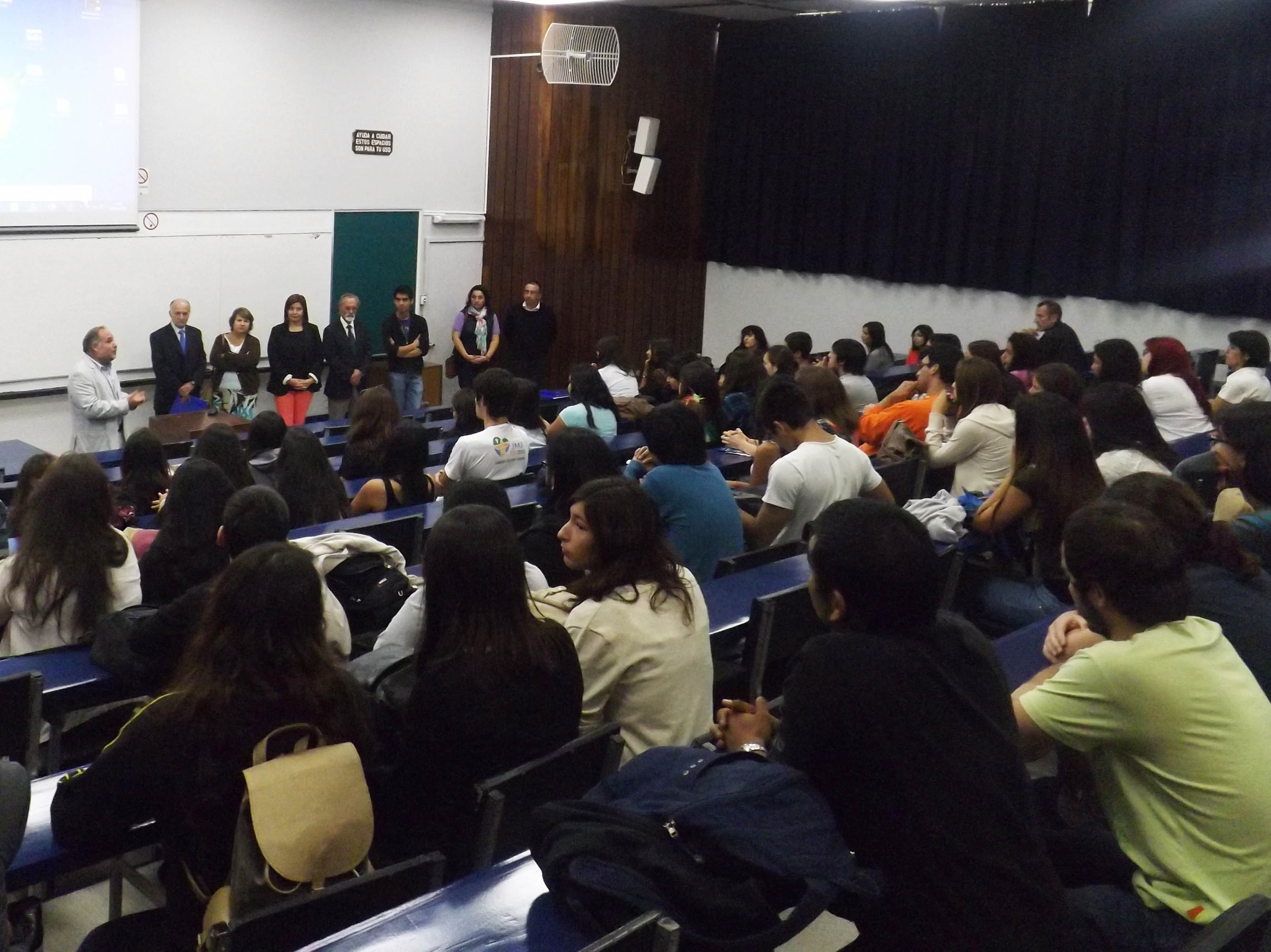 Primero fue el turno de la carrera de Sociología, que a eso de las 8 hrs. se reunió en la Sala A314 con su jefe de carrera, el profesor Omar Barriga. Asistieron también el decano Dr. Bernardo Castro y la vicedecana, Cecilia Bustos, quienes llamaron a los jóvenes a sentirse parte de la facultad y a aprovechar el espacio integral privilegiado que poseen, compartiendo con las demás carreras su interés por las ciencias sociales.