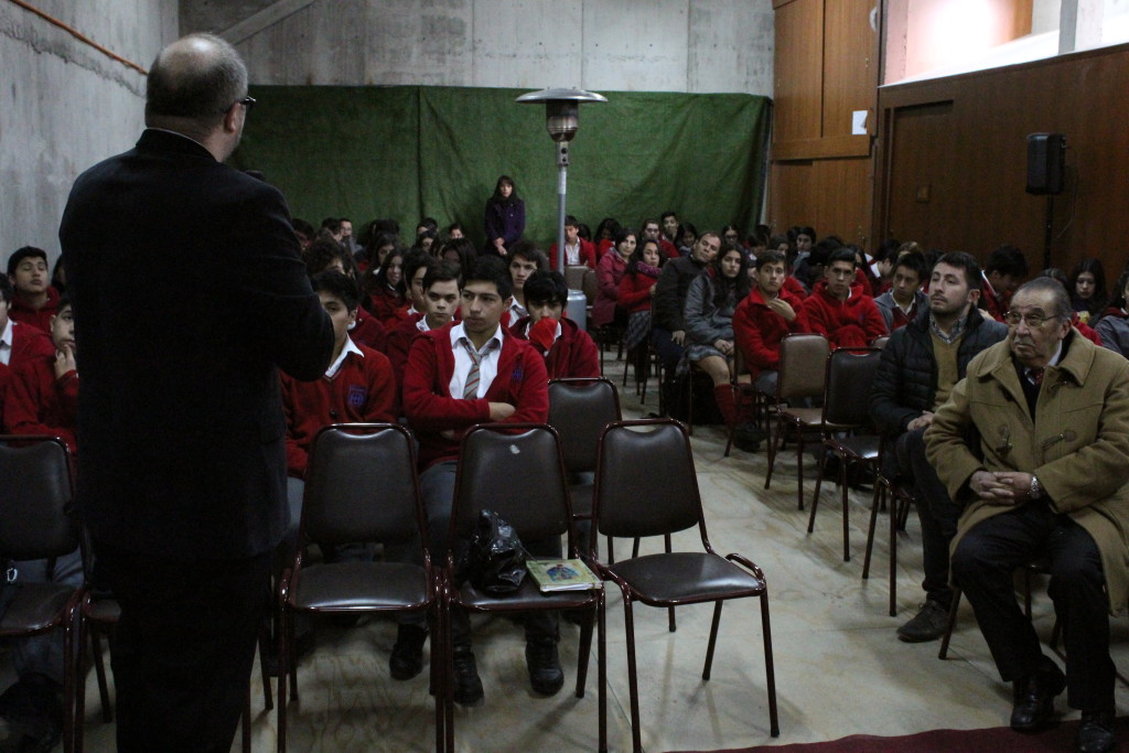 En esta oportunidad, el académico y escritor de la comentada novela “Código Chile” compartió con estudiantes de segundo medio del establecimiento y reveló varios episodios que marcaron su carrera como comunicador.