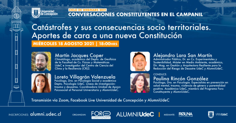 “Catástrofes y sus consecuencias socio territoriales. Aportes de cara a una nueva Constitución” es el nombre del webinar que se realizará el próximo 18 de agosto, en el marco del