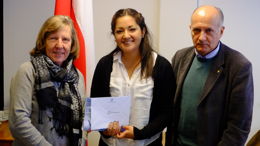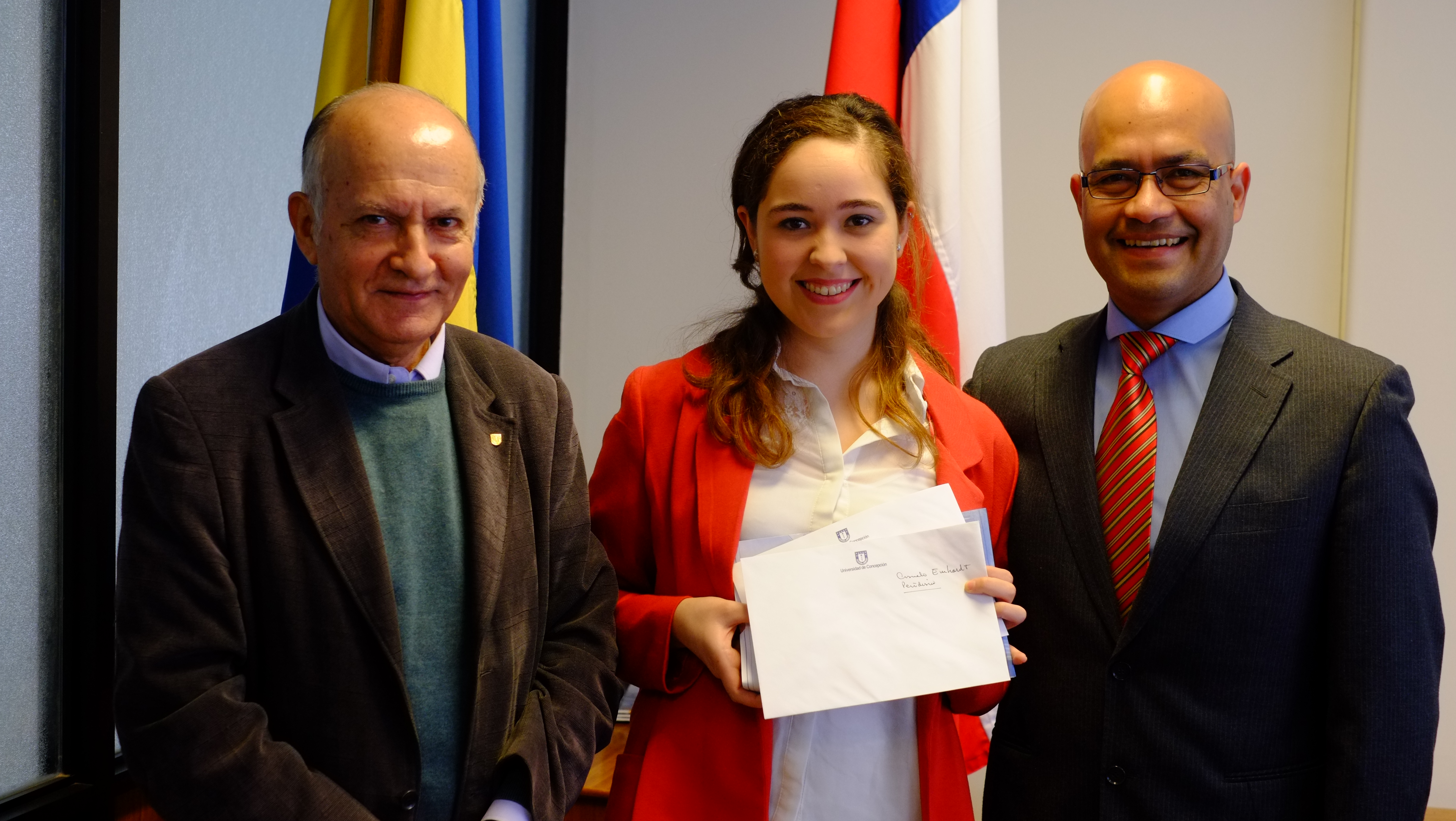 Conjuntamente se desarrolló la distinción a los nuevos egresados de nuestra facultad que obtuvieron el Premio Universidad de Concepción 2015, el cual reconoce la excelencia académica y el esfuerzo de los estudiantes en el pregrado. En esta ocasión, cada Jefe de Carrera condecoró a: Francisca Mariana Miranda (Psicología), Consuelo Emhardt Vera (Periodismo), Consuelo Díaz Barrera (Sociología) y Alonso Joaquín Soto (Antropología).