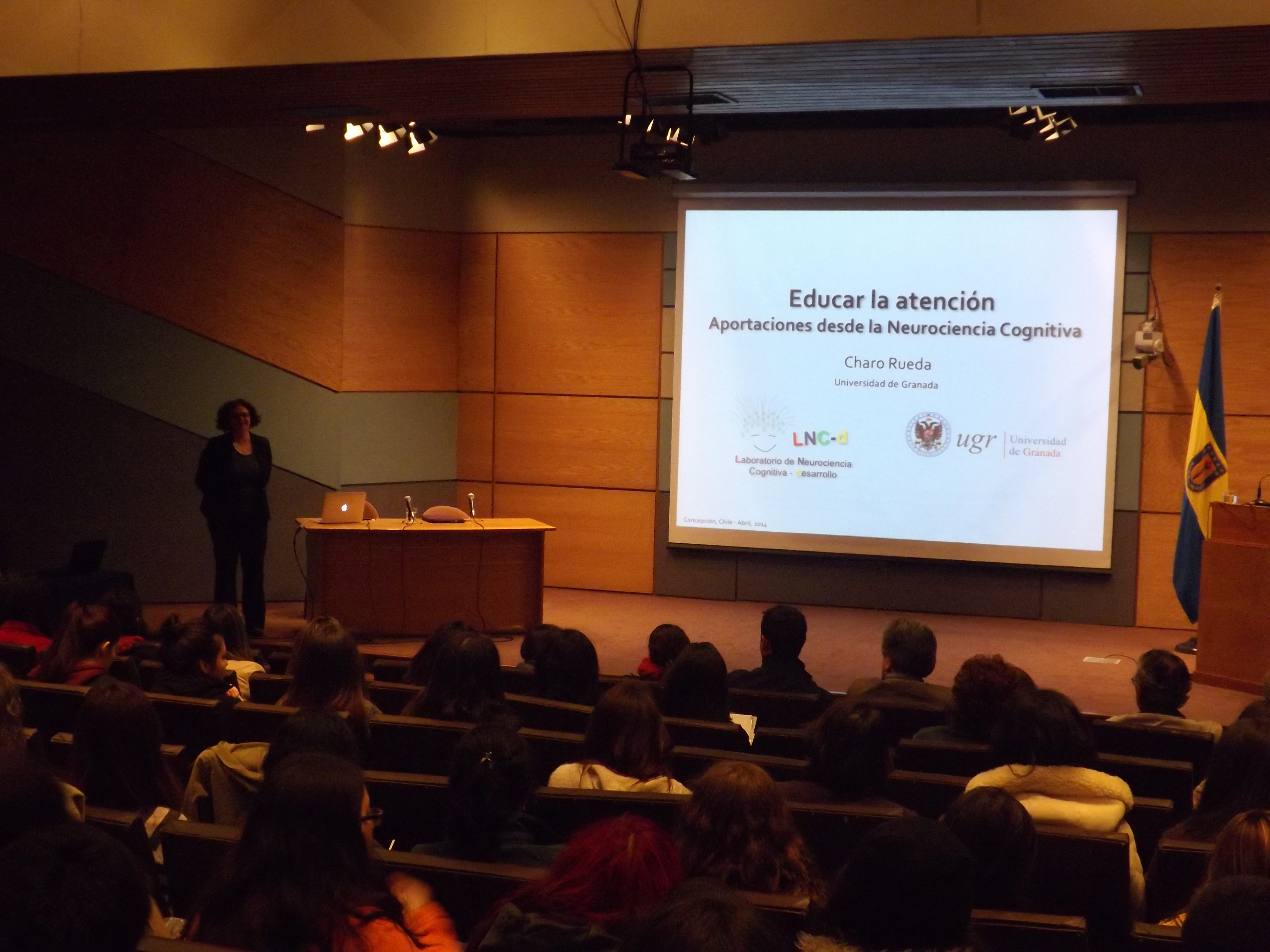 El encuentro que se desarrolló en el Auditorio Universidad de Concepción, tuvo una alta concurrencia. Entre los asistentes hubo docentes y alumnos, que escucharon con atención la presentación de Charo Rueda, quien se refirió a los avances en neurociencia, modelo neurocognitivo, atención, educación, entre otros.