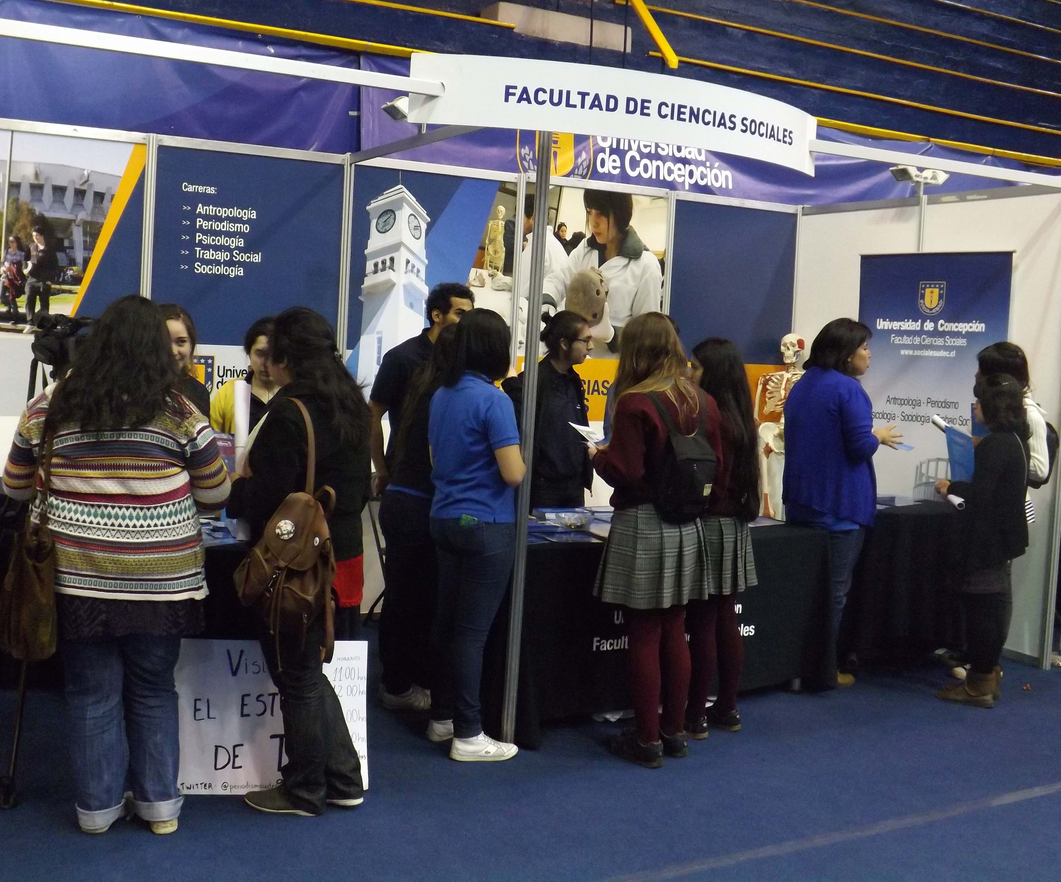 Durante los días 29 y 30 de octubre la Universidad de Concepción recibirá en sus dependencias a todos quienes estén interesados en conocer la oferta de pregrado que posee. Para ello atenderá con monitores y stand por facultad, a estudiantes secundarios que acudan a la Casa del Deporte de manera individual o siendo parte de una delegación por establecimiento.