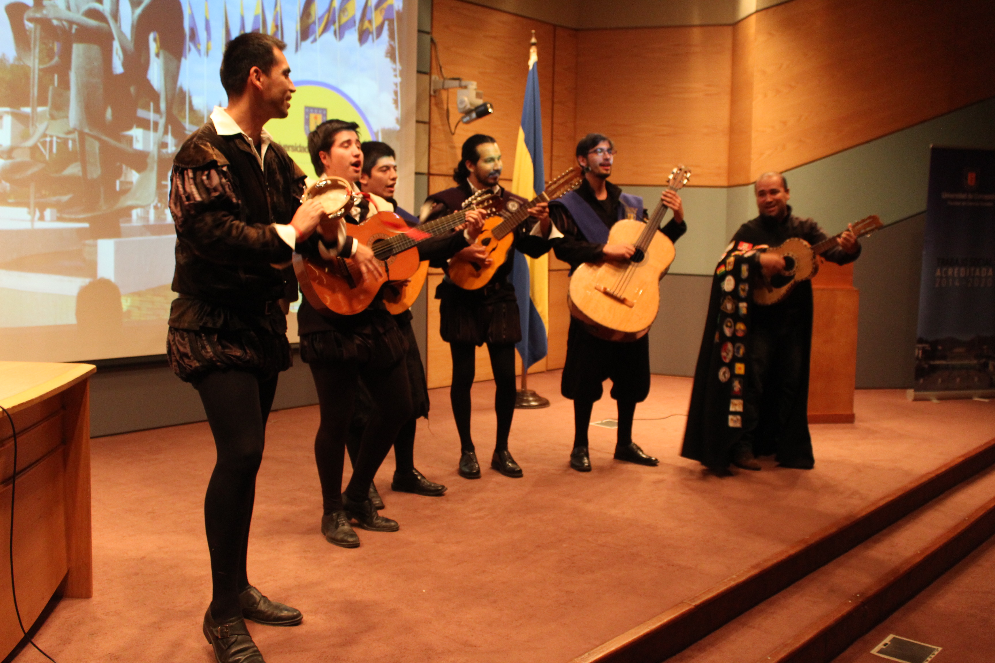 Finalizando la solemnidad, las autoridades académicas dieron un obsequio a los nuevos estudiantes, quienes luego disfrutaron de una presentación musical a cargo de la Tuna de la Facultad de Ciencias Sociales.
