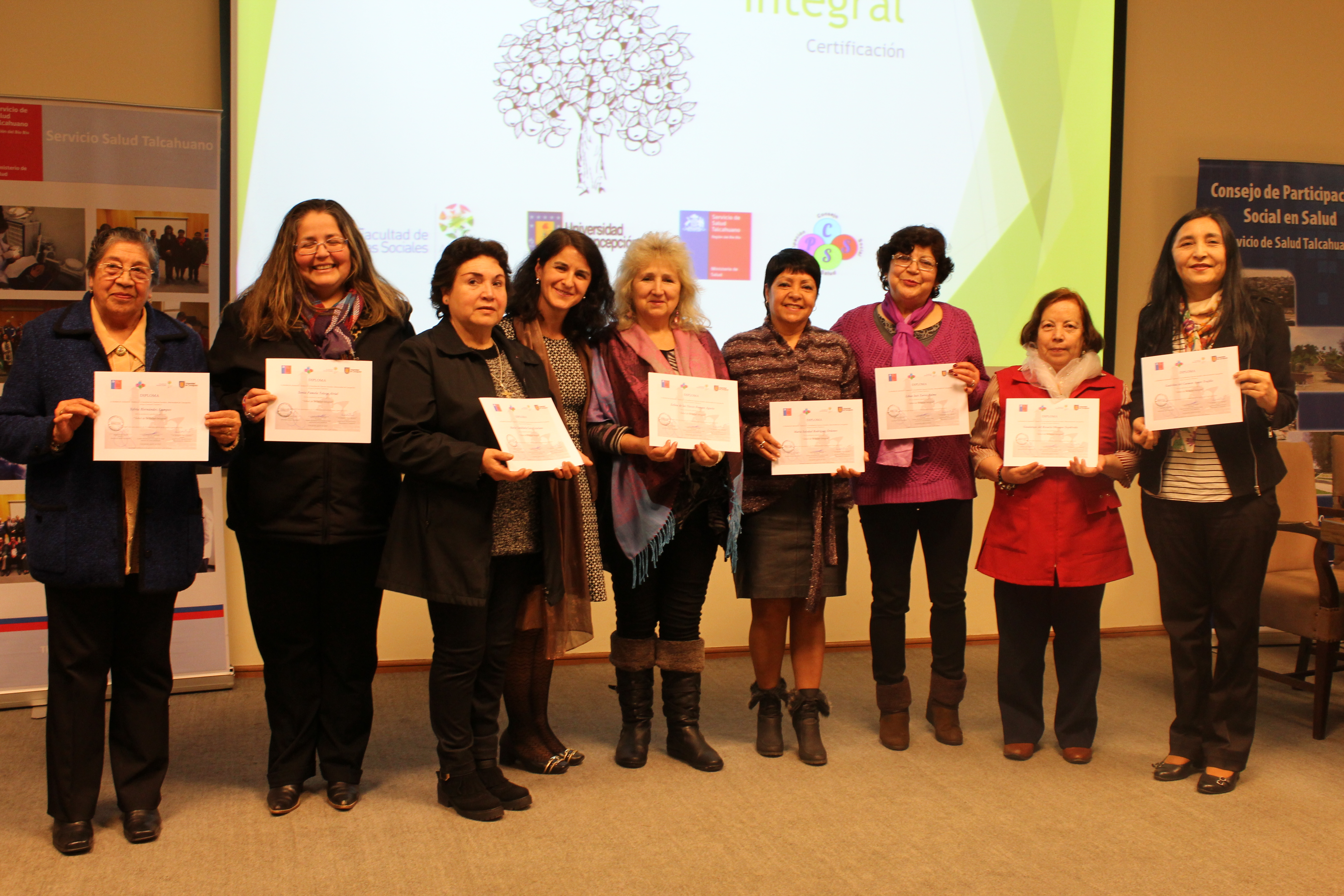 Un total de 49 dirigentas y dirigentes de la jurisdicción del Servicio de Salud Talcahuano (SST) recibieron la certificación que acredita su participación y cumplimiento de los requisitos para aprobar la Escuela Árbol de la Salud Integral, una iniciativa financiada en el marco de los Presupuestos Participativos en Salud 2015-2016 y ejecutada por la Unidad de Asistencia Técnica de la Facultad de Ciencias Sociales.