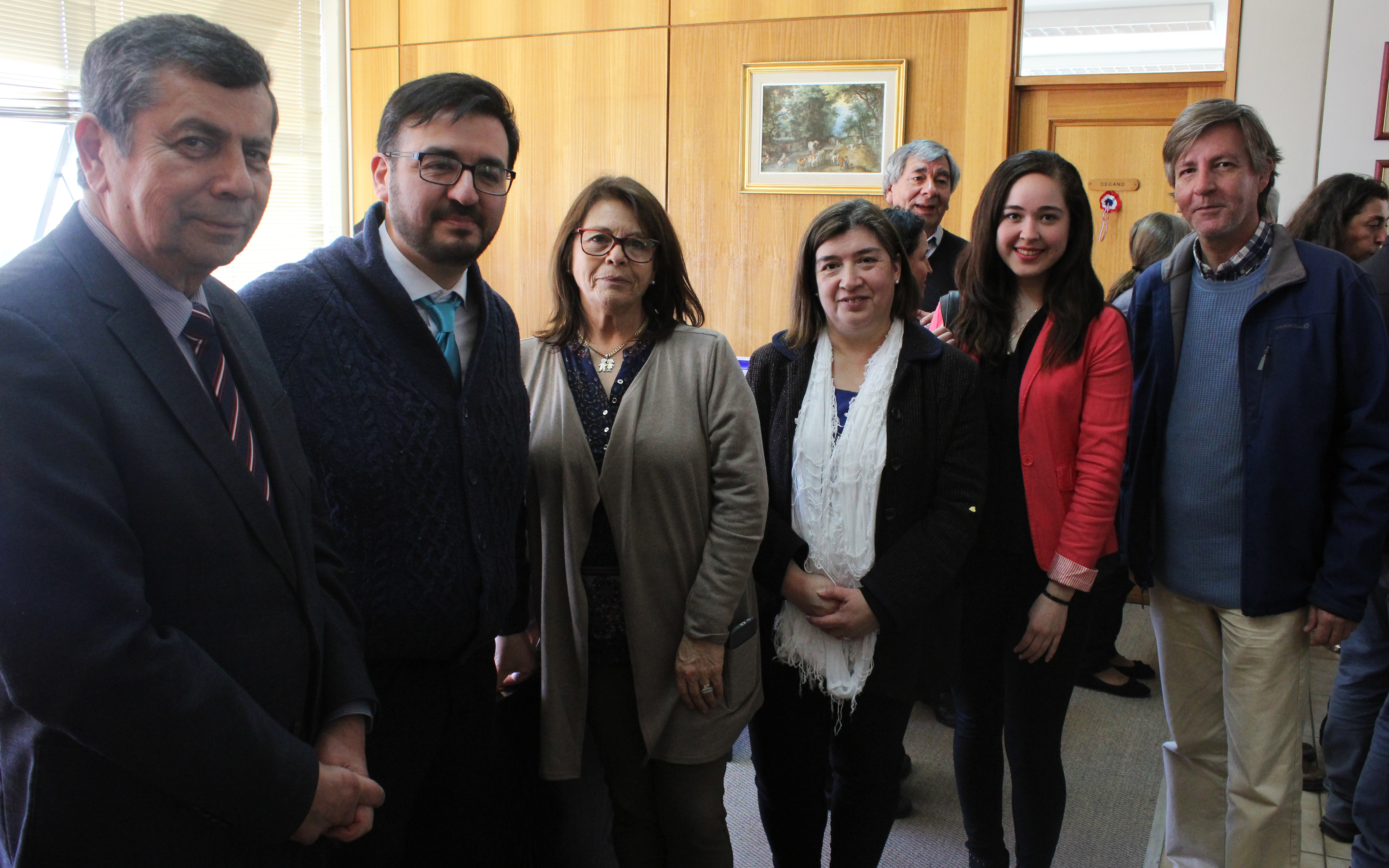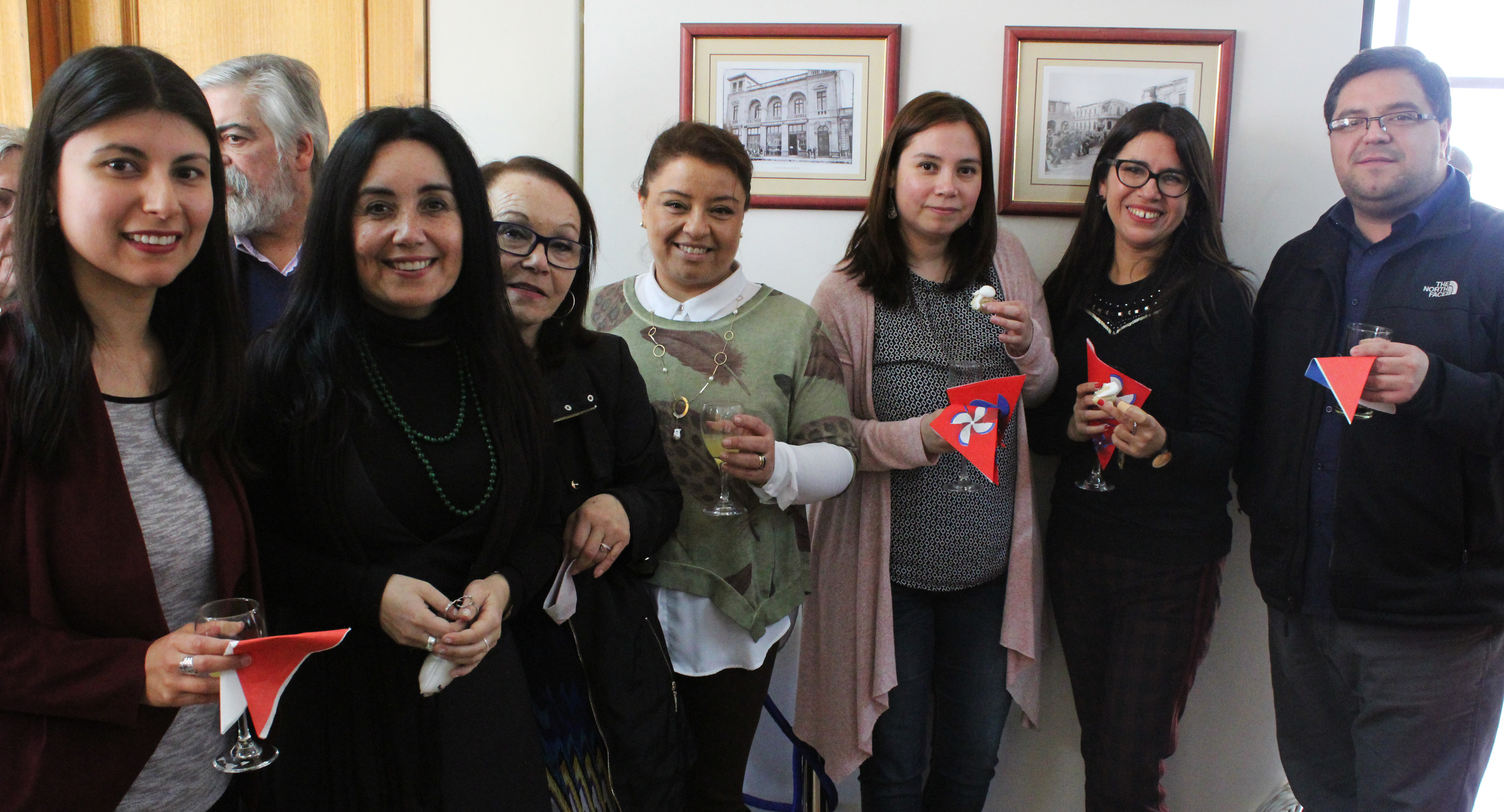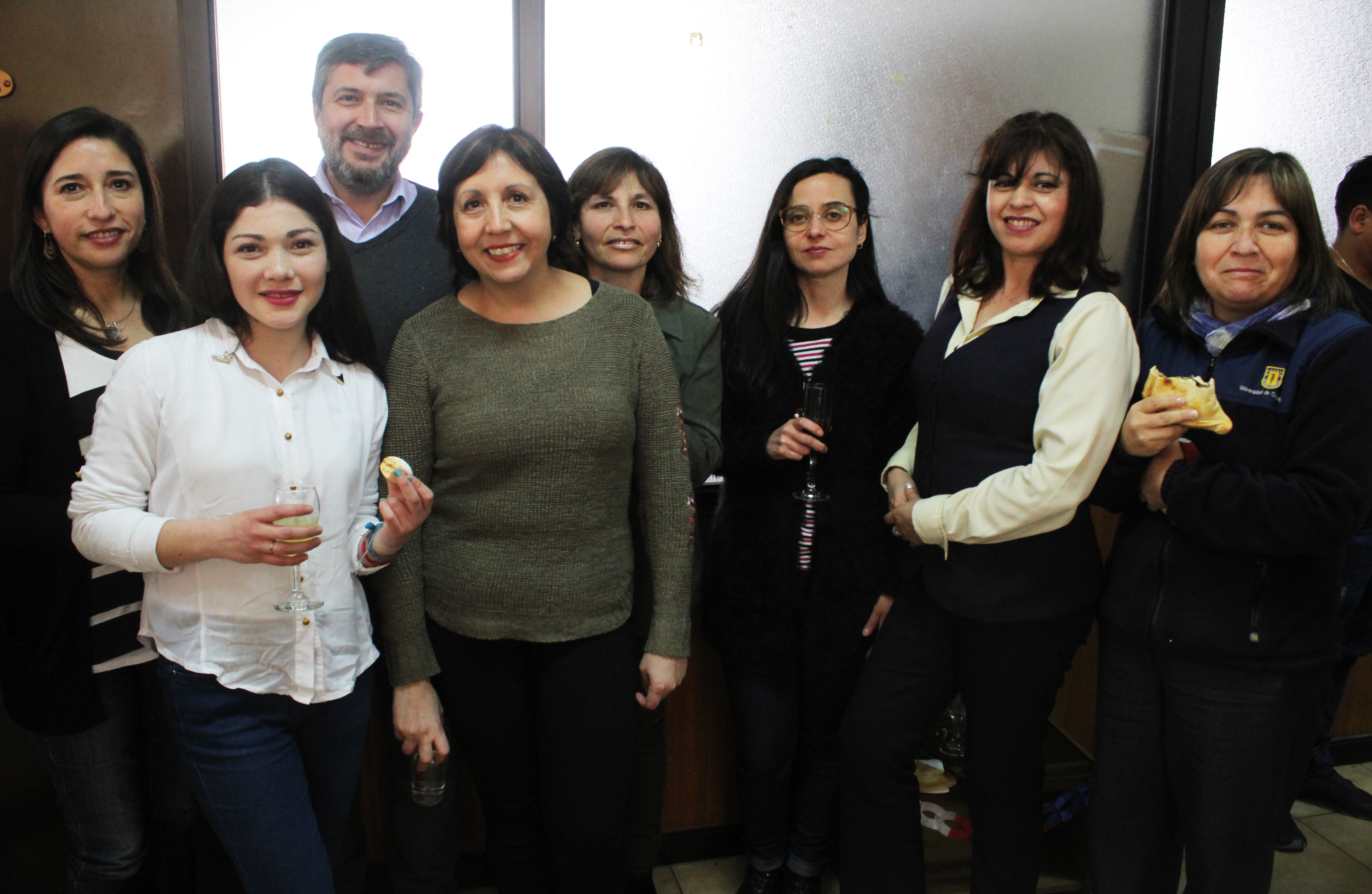 Representantes del estamento docente y administrativo de las cinco carreras de la Facultad de Ciencias Sociales se dieron cita en dependencias del Decanato para disfrutar del tradicional cóctel de Fiestas Patrias.