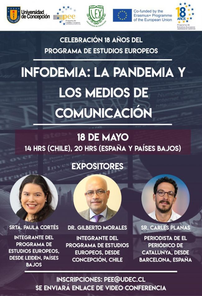 En el marco de las actividades de conmemoración del décimo octavo aniversario del Programa de Estudios Europeos de la Universidad de Concepción, el Dr. Gilberto Morales, académico y director del Departamento de Comunicación Social UdeC, participará en la charla «Infodemia: la pandemia y los medios de comunicación».