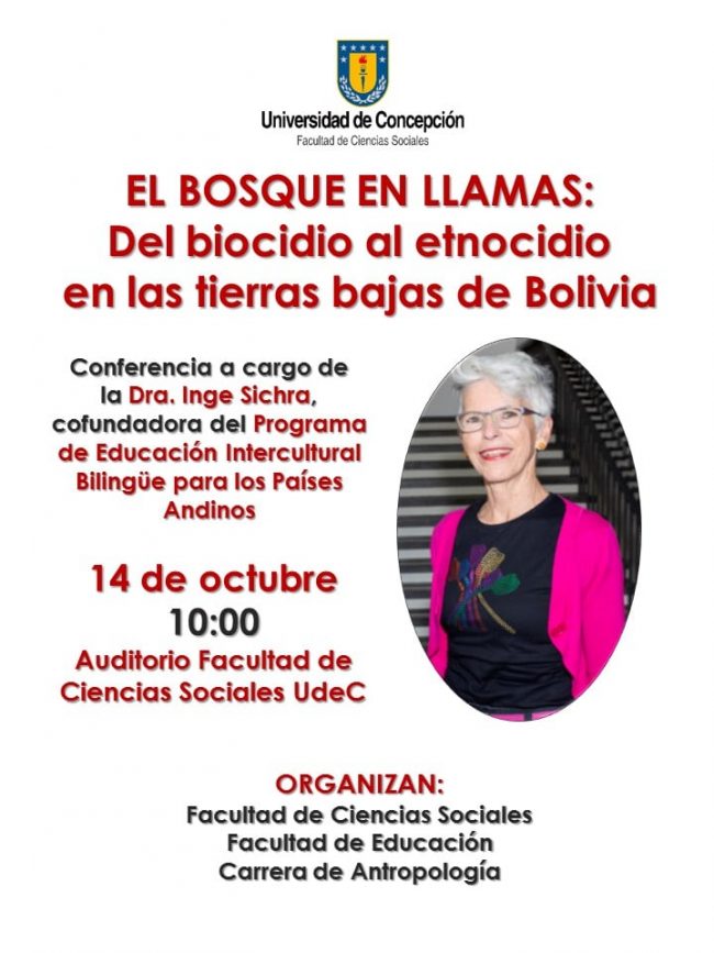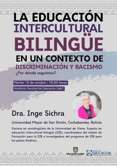 Gracias a la invitación de las facultades de Ciencias Sociales y Educación, y de la carrera de Antropología de la Universidad de Concepción, la Dra. Inge Sichra, académica de la Universidad Mayor de San Simón (Bolivia) e investigadora del Programa de Educación Intercultural Bilingüe para los Países Andinos, visitará nuestra casa de estudios y ofrecerá dos actividades abiertas a la comunidad.