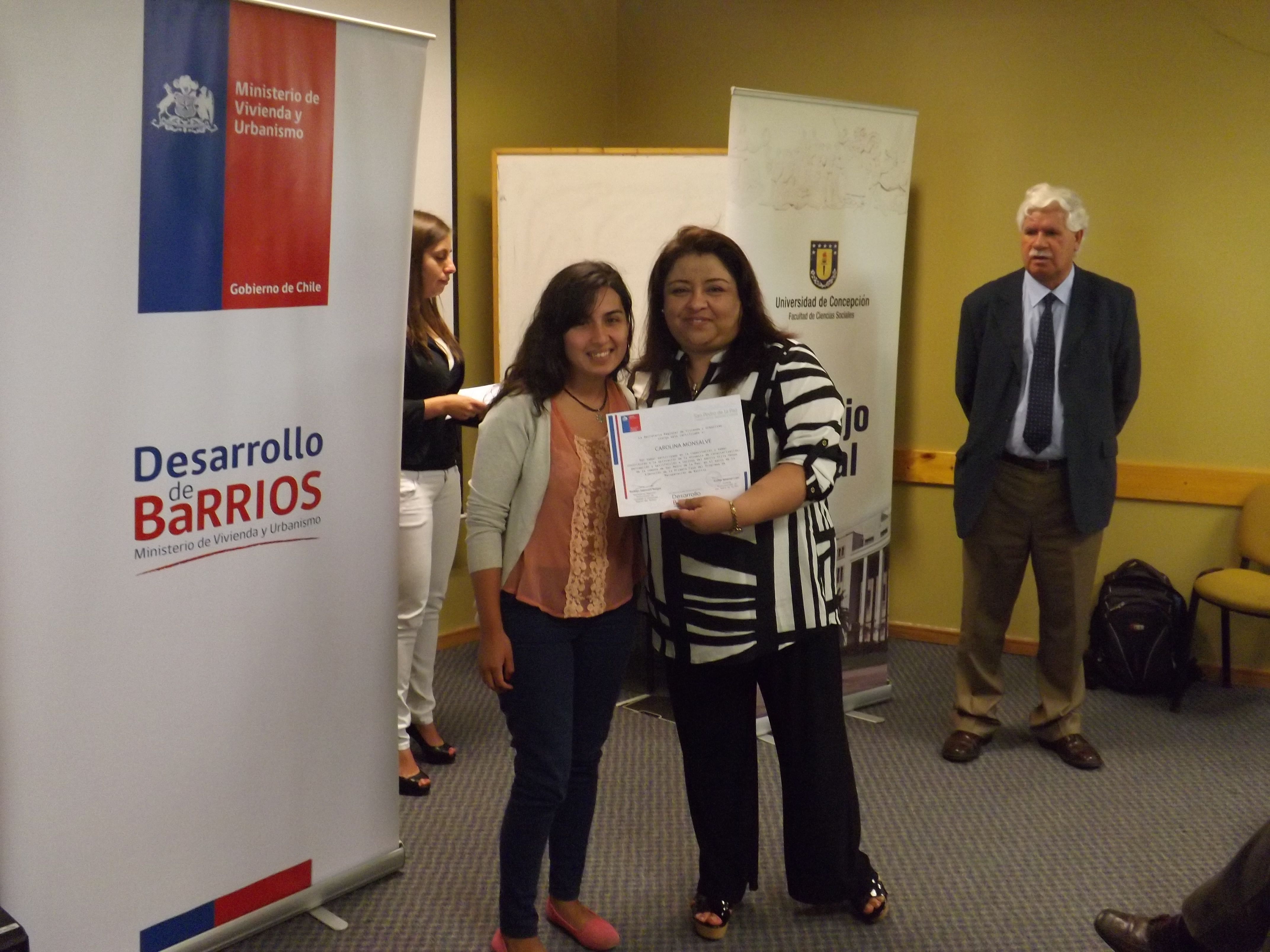 DSCF4329La labor de un grupo de estudiantes de la carrera de Trabajo Social, fue reconocida el pasado 11 de diciembre, en una jornada que certificó su compromiso con el Programa de Desarrollo de Barrios de la SEREMI de Vivienda y Urbanismo.
