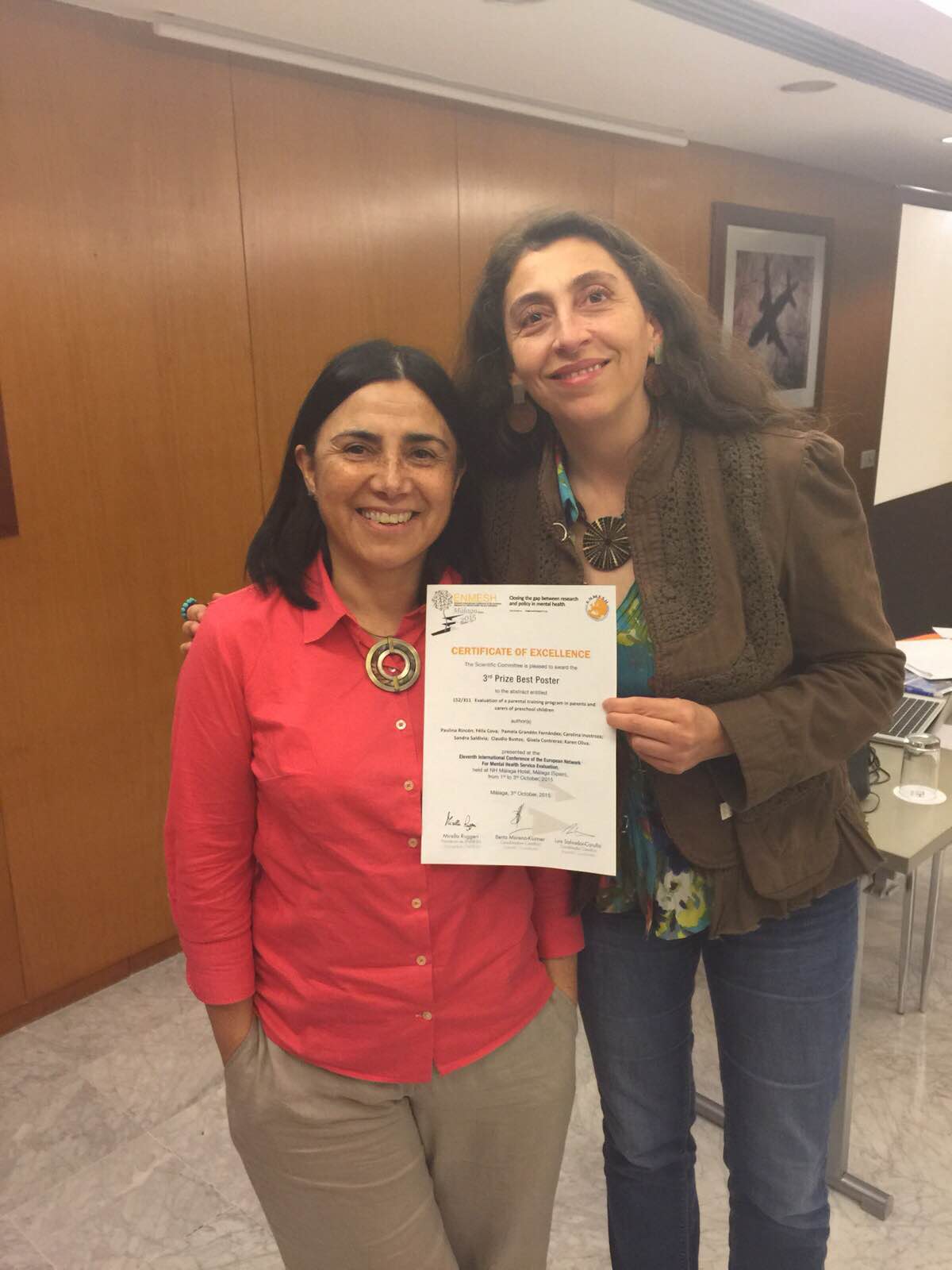 Un póster con los resultados preliminares del proyecto Fondecyt Diseño, implementacion y evaluacion de un programa de entrenamiento parental para la prevención de comportamientos y trastornos externalizados en niños y niñas preescolares, fue presentado por investigadoras del equipo de investigación de este proyecto a la XI International Conference of the European Network for Mental Health Service Evaluation (ENMESH), realizada en Málaga entre el 1 y 3 de octubre recién pasado.