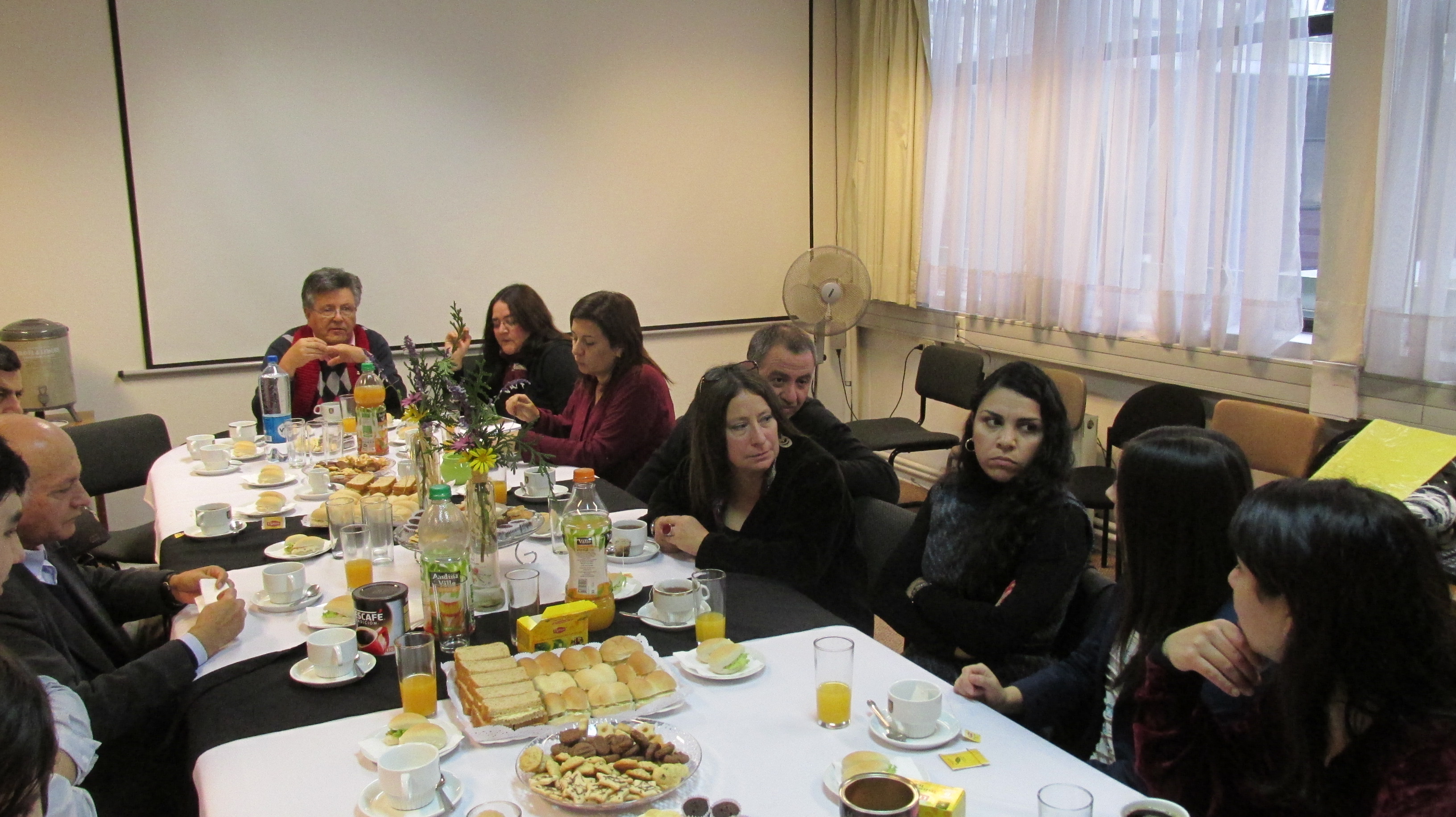El psicólogo Daniel Poque, el periodista Javier Cisterna, la socióloga Rayén Hellwig y la Antropóloga Daniela Carrasco, recientemente distinguidos con el Premio Universidad de Concepción, se reunieron con las autoridades de la Facultad, en un desayuno organizado por el Decano, Dr. Bernardo Castro.