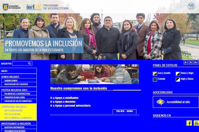 Cabe mencionar que la creación de la página web, pudo llevarse a cabo gracias al trabajo colaborativo del Centro de Formación y Recursos Didácticos, CFRD y el Programa Interdisciplinario por la Inclusión, Includec, que dependiente de la Vicerrectoría, tiene como objetivo promover la inclusión de alumnos en todos los ámbitos de la vida estudiantil, buscando siempre la igualdad de oportunidades. Los encargados de hacerlo son un equipo compuesto por profesionales, docentes, estudiantes y administrativos, entre los que destacan la académica del Departamento de Psicología, Claudia Paz Pérez, y el periodista del Programa ARTIUC, Juan Pablo Gómez, ambos profesionales de nuestra facultad.