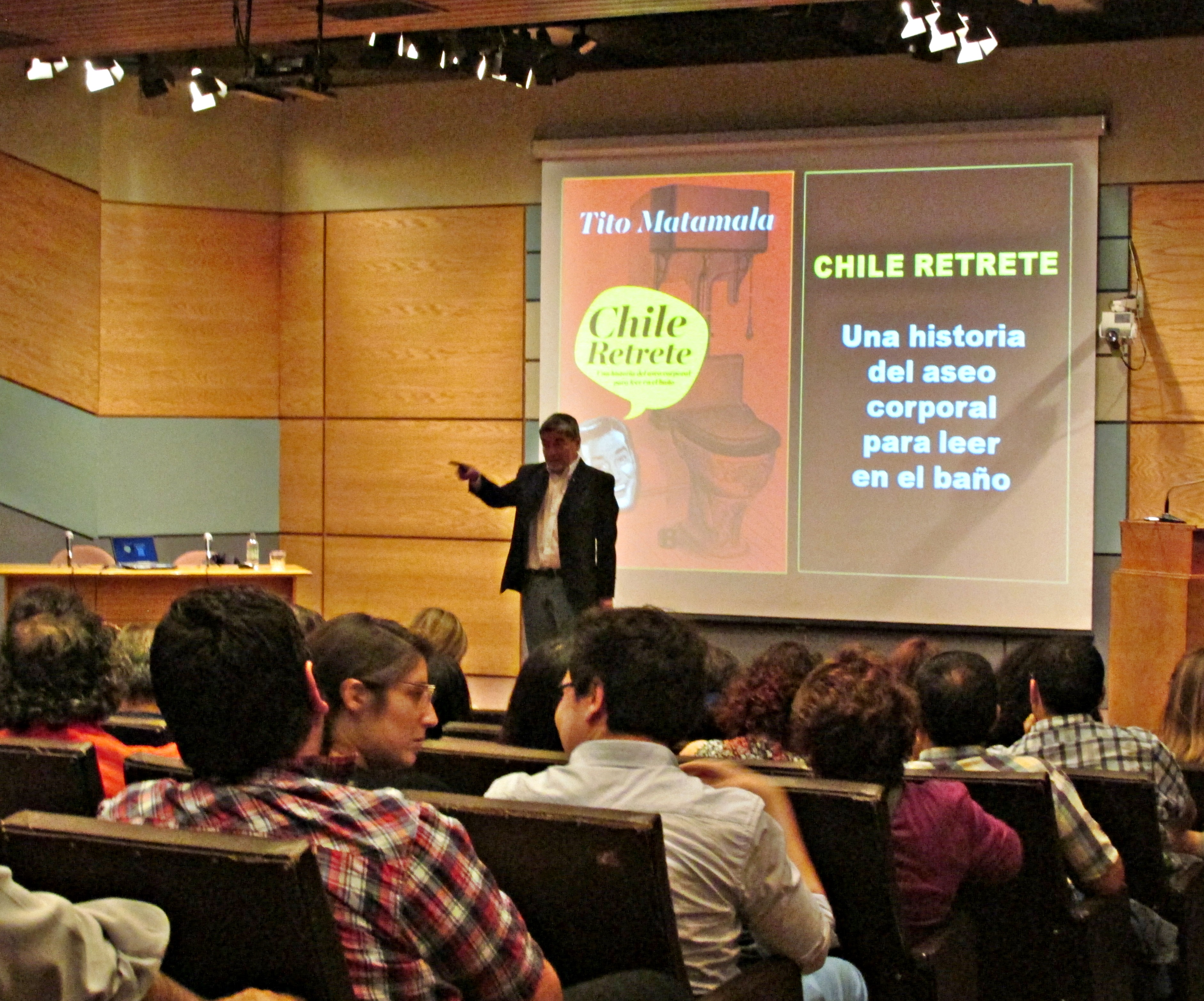 IMG_8580Con el Auditorio Universidad de Concepción repleto de académicos, estudiantes y público penquista, además de la presencia del nuestro decano, Dr. Bernardo Castro, el periodista, magíster en literaturas hispánicas y escritor Tito Matamala, presentó su libro «Chile retrete» el cual narra diversas crónicas sobre el aseo corporal a lo largo de la historia.